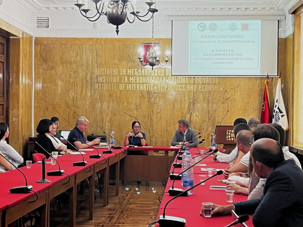 应塞尔维亚国际政治经济研究所邀请,当地时间9月6日,诺维萨德大学孔子学院中方院长陈秀为其做了题为“儒家思想与习近平治国理政”的讲座。研究所所长布拉尼斯拉夫·乔尔杰维奇(Branislav Djordjević)、副所长伊沃娜·拉德杰瓦茨(Ivona Ladjevac)、“一带一路”研究中心主任卡塔丽娜·扎基奇(Katarina Zakić)以及研究员、博士生等近三十人参与了活动。