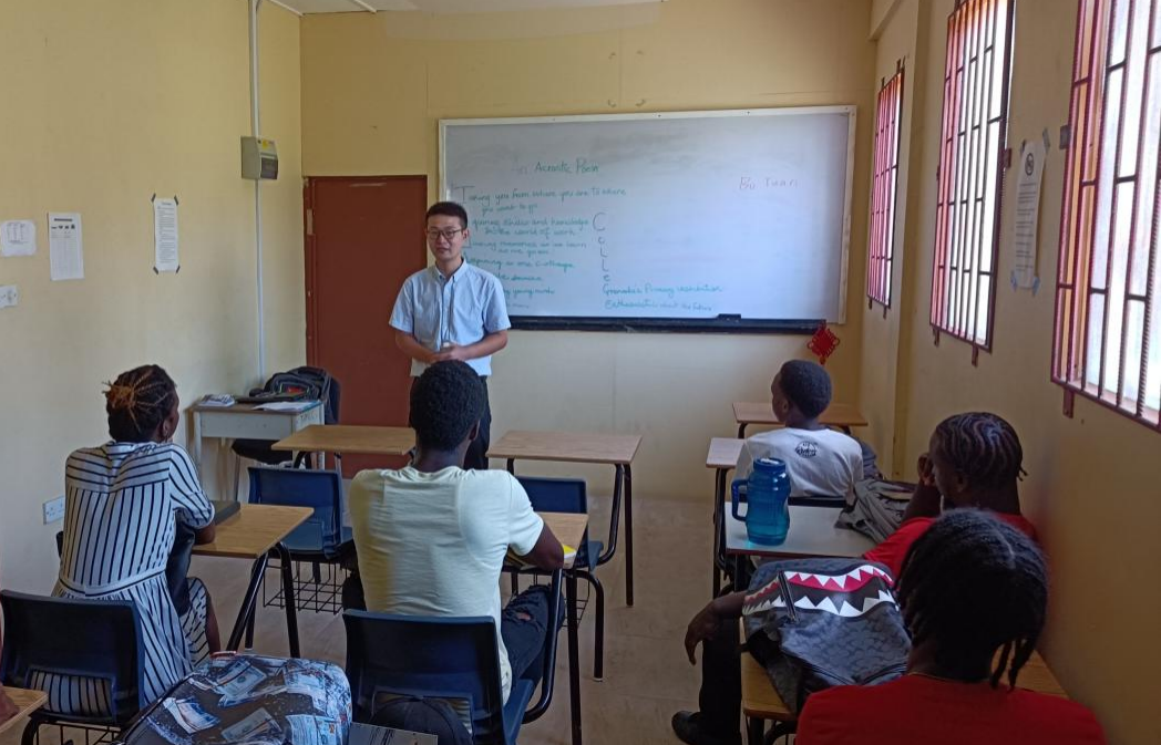 当地时间9月18日上午9点30分,在玛丽秀社区大学圣帕特里克校区的F1多媒体教室,国际中文教师志愿者苑博迈上讲台,为该校区的2023级汽修专业的学生开讲第一堂线下中文课。由此,孔子学院在格林纳达首都区之外的第一个常驻教学点正式运行。