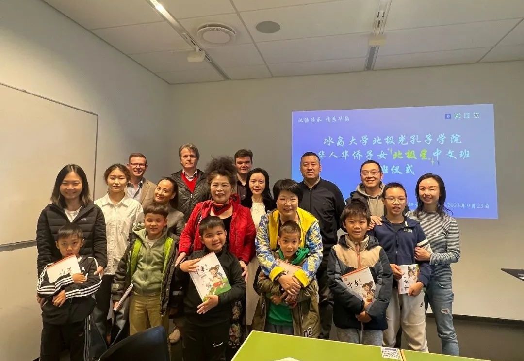 9月23日,冰岛北极光孔子学院举行首届“北极星”中文班开班仪式。中文班旨在推动中文教育发展,传承中国文化,为冰岛华人华侨子女提供学习中文的平台。华人华侨协会会长李彤,孔院冰方院长Magnus、中方院长周岚,当地华人华侨及其子女参加。