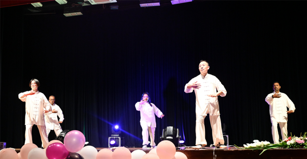 9月12日中午,毛里求斯大学举行了久违的教工日(Staff Day)活动。热情的舞蹈、欢快的歌声、精彩的武术表演以及有模有样的时装秀等节目吸引了台下近400名观众。孔子学院公派教师张康夫和李晓霞带领毛里求斯大学3名教职工表演了“八法五步”太极拳。此次表演是太极拳班的一次教学展示,也是毛大教职工在太极拳课结束后自发坚持练习的成果,富有中国特色的太极拳极表演获得了观众热烈的掌声。