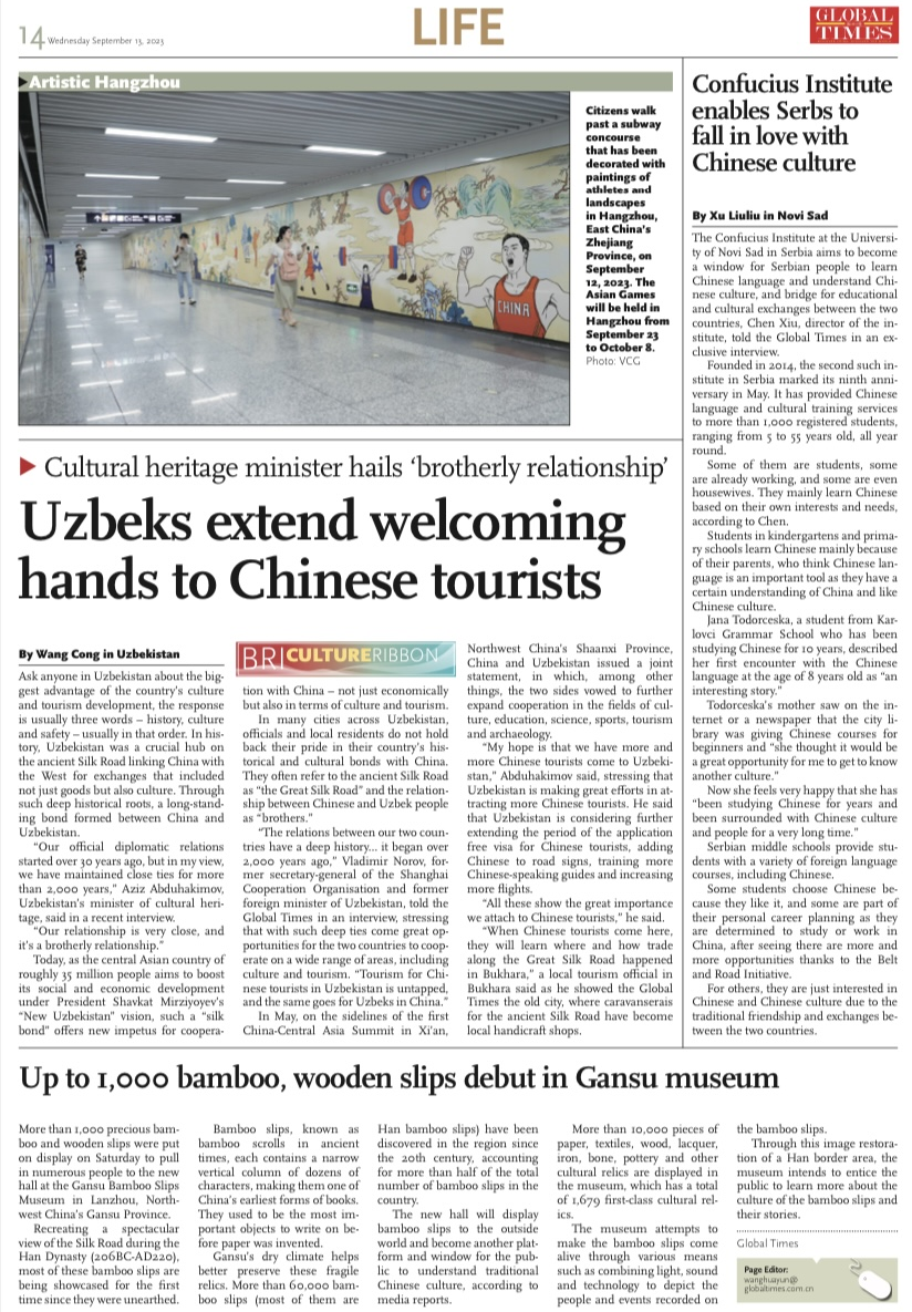 北京时间9月13日,《环球时报》(Global Times)官媒报道了对诺维萨德大学孔子学院的专访。