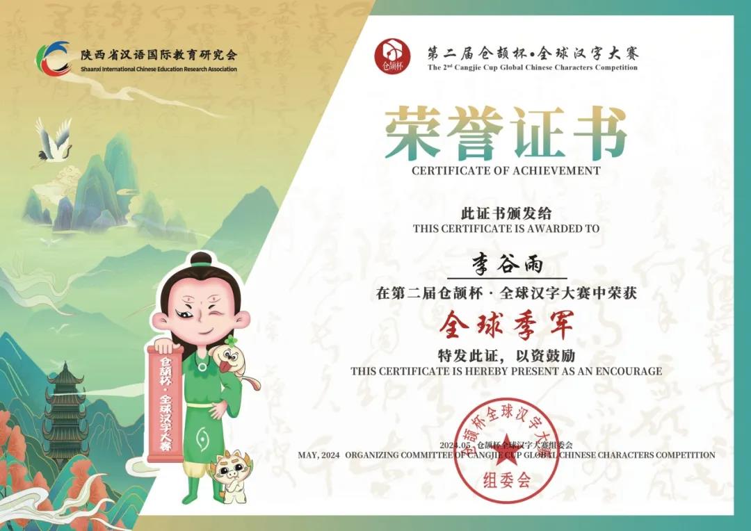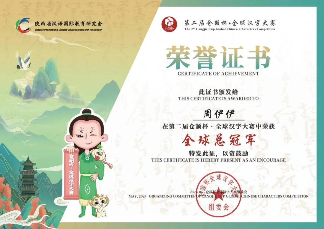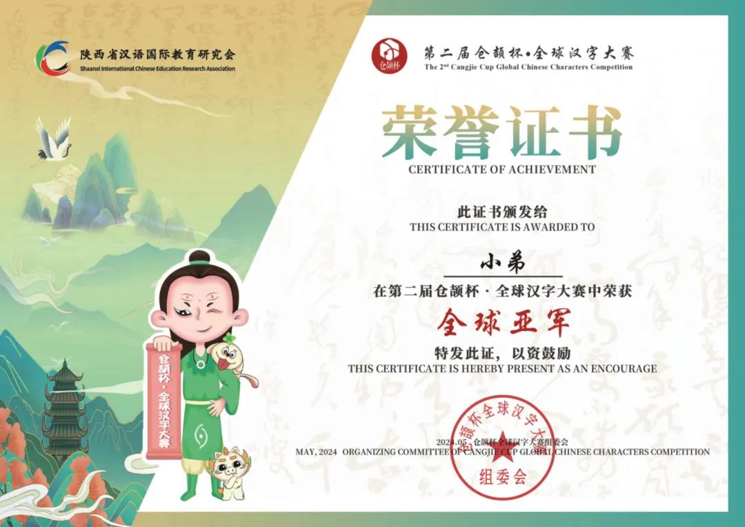 近日,由教育部中外语言交流合作中心、陕西省渭南市人民对外友好协会发起,陕西省汉语国际教育研究会承办的第二届“仓颉杯•全球汉字大赛”颁奖典礼落下帷幕。