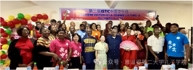 当地时间5月22日,雅温得第二大学孔子学院教学点——喀麦隆高等翻译学院(ISTIC)联合喀麦隆国际关系学院(IRIC)成功举办第二届中国文化日活动。活动包括学生中文才艺展、中文知识竞答赛、大胃王比赛、旗袍选美赛和中国菜展示。ISTIC校长查尔斯·苏教授、副校长梅坦·摩根博士,雅二大孔院中方院长薛晓彬女士及孔院师生代表共计100多人参与此次活动。