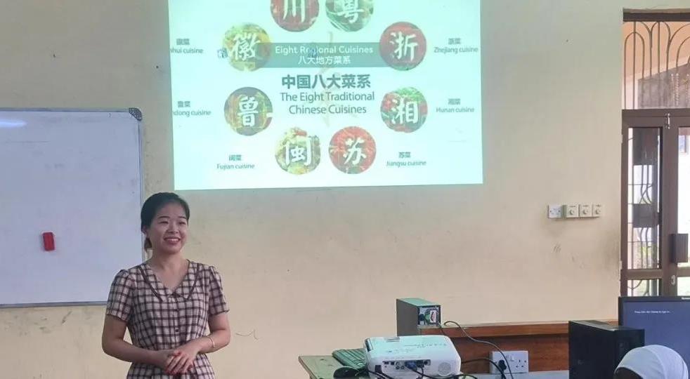 当地时间5月6日,达大孔院下设教学点圣克里斯汀娜女子中学成功举办中国传统饮食文化活动。此次活动从听取讲座、观看视频、讨论分享三个方面展开。
