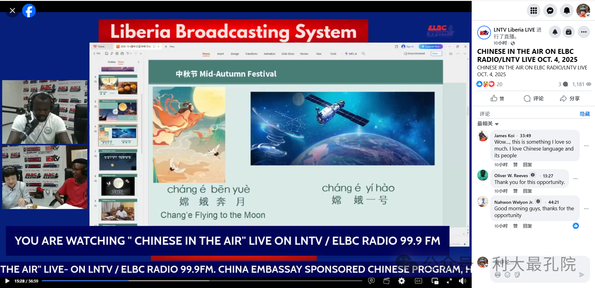 中秋寄情,空中共语 ——利比里亚大学孔子学院师生携手走进利比里亚国家广播电台