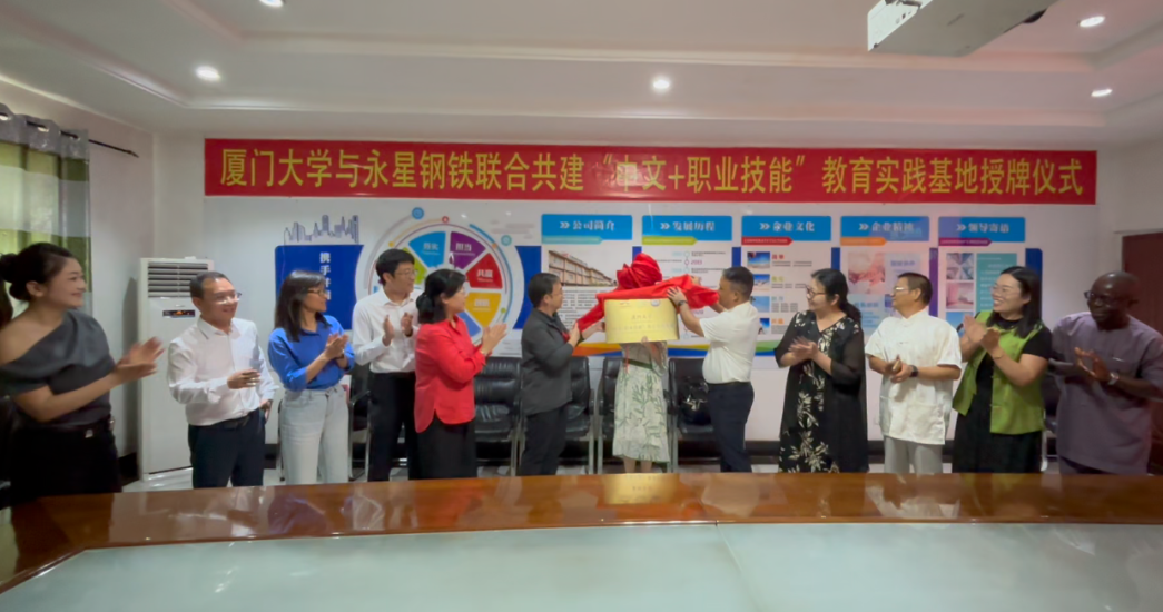 当地时间10月25日,厦门大学校长张宗益教授率代表团访问尼日利亚永星钢铁公司,与企业续签“中文+职业技能”战略合作框架协议,并为“厦门大学国际中文教育专业学位研究生实践基地”授牌。中国驻拉各斯总领馆总领事严宇清现场见证。