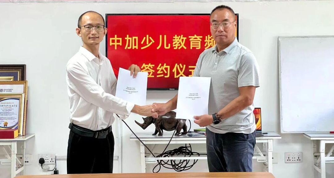 10月27日,加纳大学孔子学院与加纳黄金数字电视台签署“中加少儿教育频道战略合作签约仪式”,共建加纳首个中文少儿教育电视平台。双方通过聘任顾问、启动《欢乐中文课堂》本土中文教育节目、捐赠教材及发起“空中知识课堂”公益项目。此次合作通过“教育+文化+传媒”的深度融合,推动中文教育的本土化传播与创新发展。