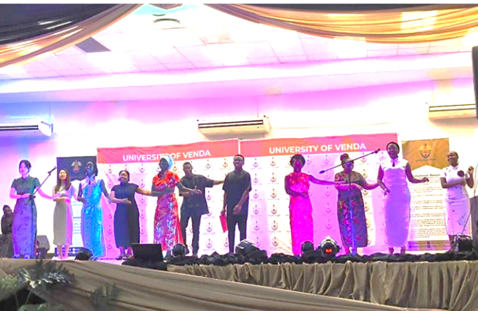 10月2日,绿色科技孔子学院受邀参加南非文达大学国际处主办的“国际周”庆祝晚宴。孔院中方院长葛瑞红、全体中文教师以及学生代表均着中式服装出席,展示中华传统文化之美。孔子学院“彩虹合唱团”给观众带来精彩的中文歌曲表演。