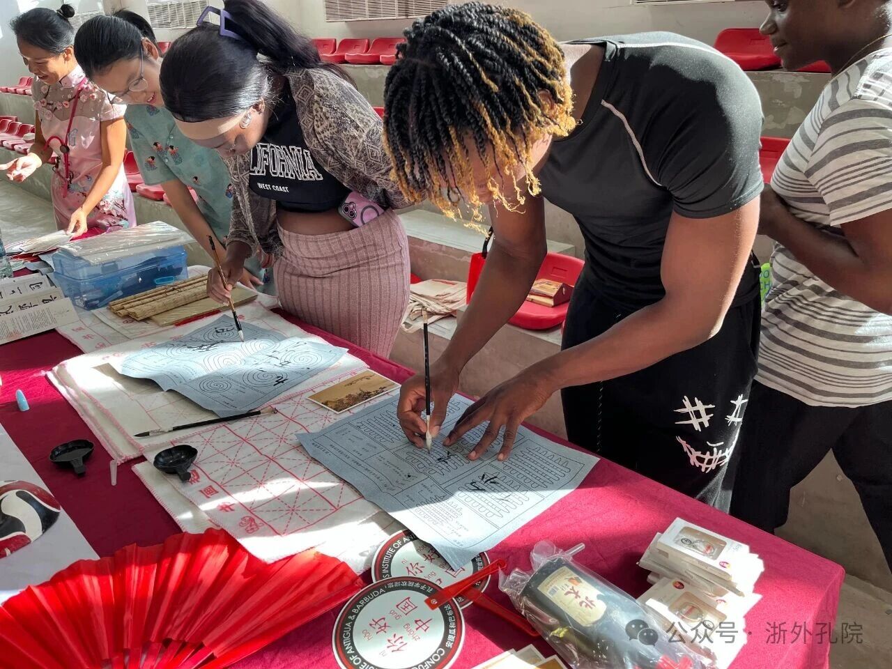 2025年11月,安提瓜和巴布达孔子学院与西印度大学五岛分校合作,成功举办了两场中国文化体验活动。活动通过书法、筷子挑战、五子棋、踢毽子、脸谱涂色等互动项目,吸引约1000人次参与,激发了学生对中文和中国文化的浓厚兴趣,推动多名学生表达选修中文课程的意愿,为后续中文教学与文化交流奠定了良好基础。