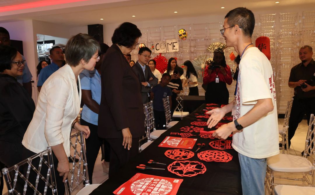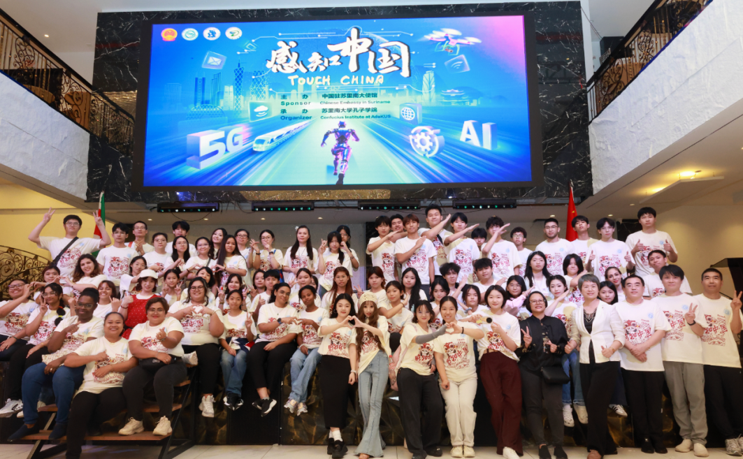 11月22日,由中国驻苏里南大使馆主办、苏里南大学孔子学院承办的“感知中国”活动在帕拉马里博Ballroom Prince盛大举行。本次活动以“智能科技”与“传统经典”为主题,通过创新的设计与布展,向苏里南社会全面展示中华传统文化底蕴与中国式现代化成就。中国驻苏里南大使林棘、苏里南总统Jennifer Geerlings-Simons及多位政府部长、各界代表、民众约2000人参与,多家主流媒体进行报道,苏大孔院同时进行线上直播。