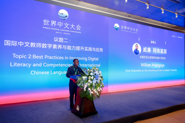 11月15日,由中外语言交流合作中心主办、浙江师范大学协办的世界中文大会“国际中文教师数字素养与能力提升”平行会议在北京顺利召开。坦桑尼亚达累斯萨拉姆大学校长威廉·阿南基瑟教授受邀参会,围绕非洲数字中文教育发展、国际中文教师素养提升等核心议题发表重要演讲,现场传递其对数字教育合作的思考与实践方向。