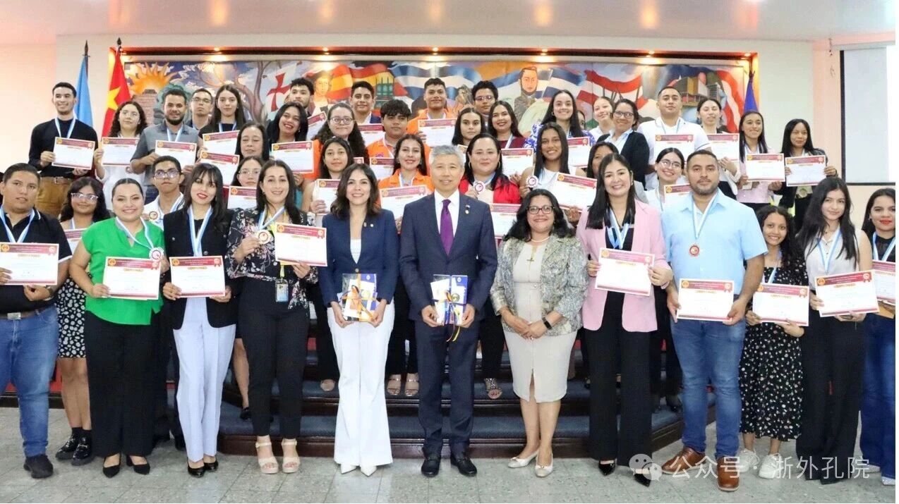 11月26日,洪都拉斯国立教育大学孔子学院举办“初遇中国文化暨‘汉语导论’课程结业典礼”。中国驻洪都拉斯大使馆参赞谭旻星、洪都拉斯外交部中国事务办公室代表、国立教育大学校长及副校长、85名学员代表及其亲属等共130余人出席了典礼。
