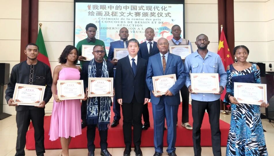 当地时间 11 月 11 日,中国驻喀麦隆大使馆举办 “我眼中的中国式现代化” 主题绘画及征文大赛颁奖仪式。徐永大使出席活动并为获奖者颁发证书。雅温得第二大学孔子学院学子表现突出,共11人获奖,体现了孔院中文教学与跨文化交流成果。