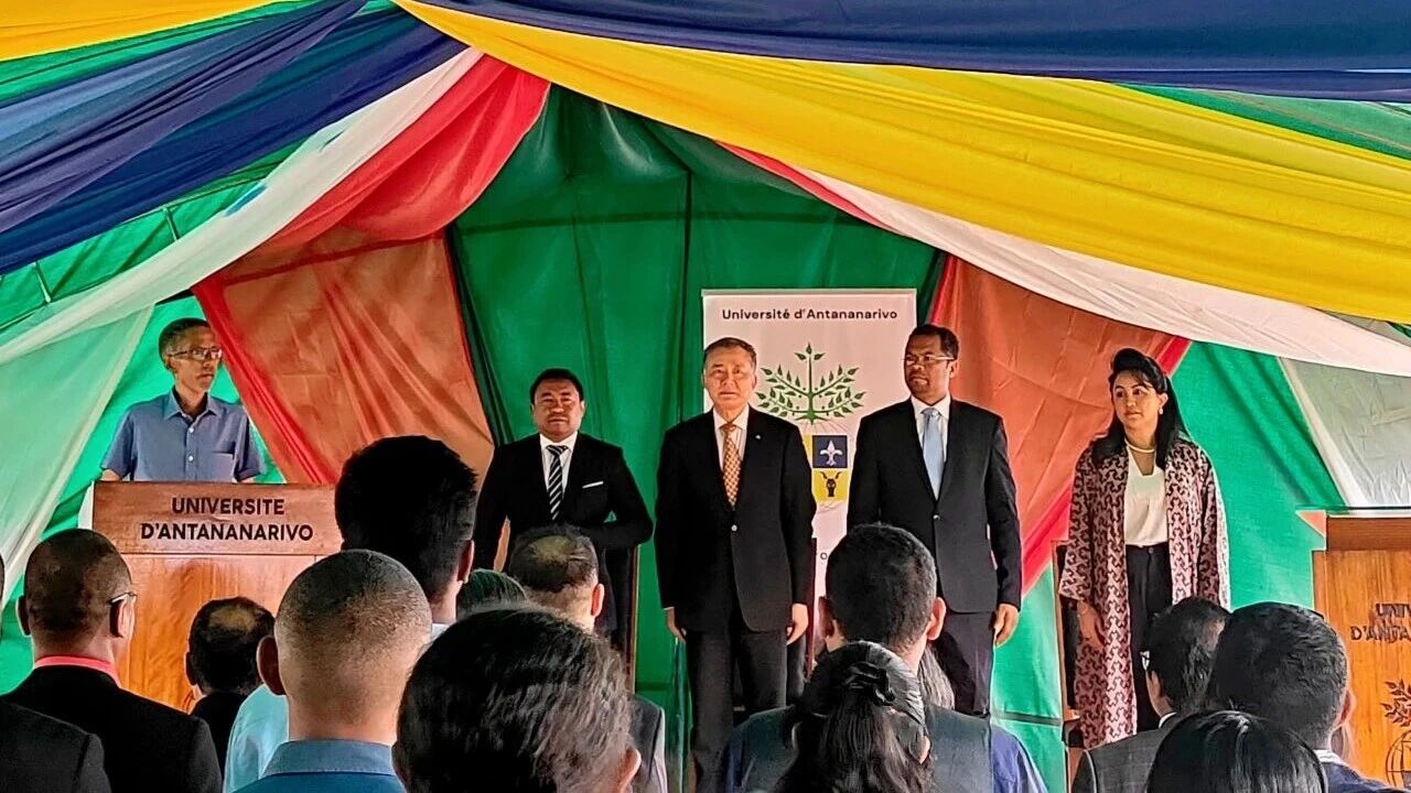 当地时间12月1日,由中国驻马达加斯加大使馆援助的塔那那利佛大学医务所修缮项目举行竣工仪式,中国驻马大使季平、马达加斯加高等教育与科学研究部长拉武尼马南楚阿、塔大董事会主席拉扎卡博阿那、塔大校长兰德里阿纳索罗等约50人出席,塔大孔院中方院长魏祖钦、马方院长玉兰携师生代表受邀参加仪式。