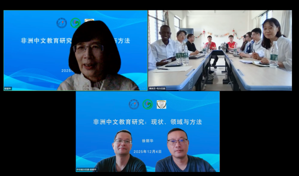 12月4日,布隆迪大学孔子学院与中非班吉大学孔子学院联合举办国际中文教师科研方向以及素质发展培训讲座,旨在提升孔院教师的科研水平、教学能力和专业素养。讲座特邀浙江师范大学徐丽华教授主讲,布隆迪大学孔子学院中方院长丛岩、班吉大学孔子学院中方院长徐艳甲及十余位教师代表共同参加。