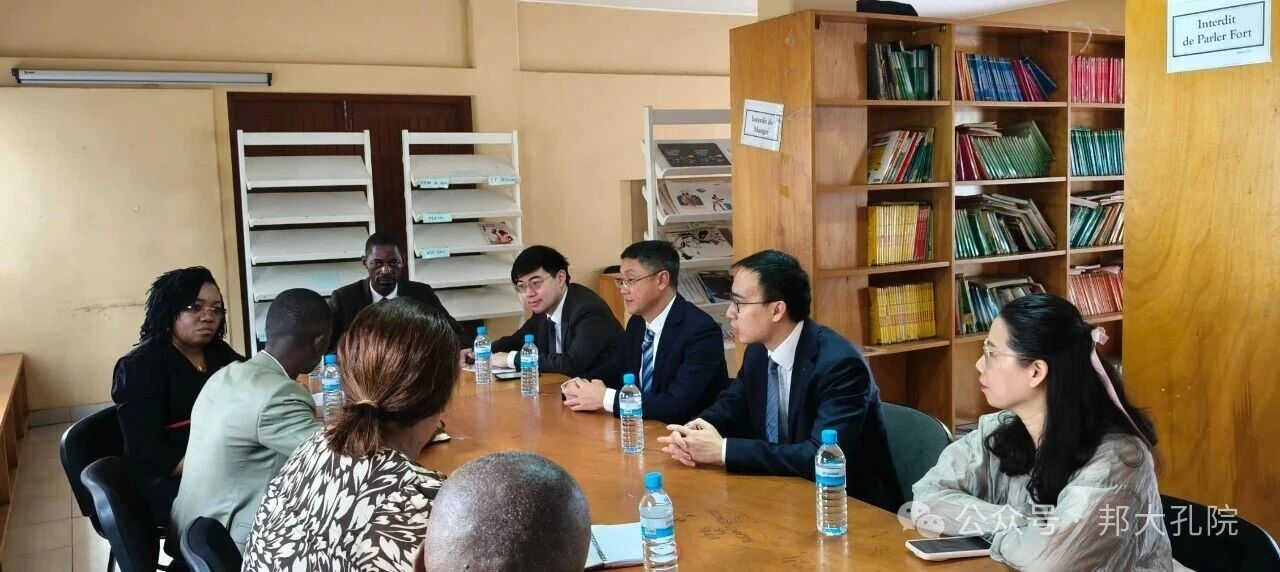 当地时间12月19日,中国驻加蓬大使馆官员、加蓬国民教育部官员与邦戈大学孔子学院代表联合走访曼德拉中学和中加示范小学,就加蓬国民教育阶段开设汉语课程与两校领导进行了正式对接。
