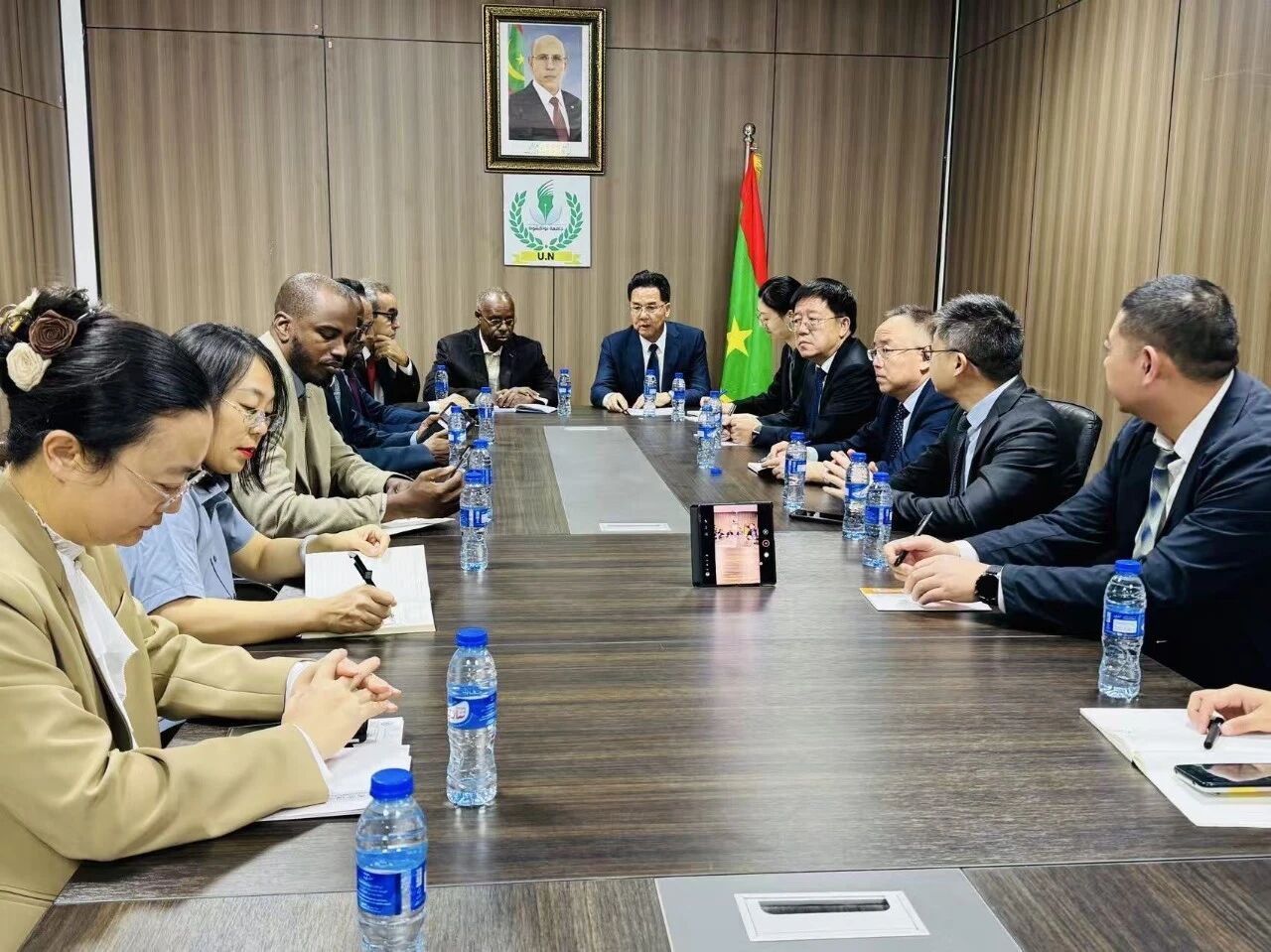 当地时间12月26日,努瓦克肖特大学孔子学院中外方院长及公派教师代表访问毛里塔尼亚教育与教学系统改革部,与该部秘书长塔利卜·叶海亚及部长顾问泰菲·穆罕默德·沃尔举行会谈。双方围绕推动毛里塔尼亚中小学中文教育项目实施展开深入交流,并就2026—2027学年重点中小学开设中文课程的具体安排进行协商。