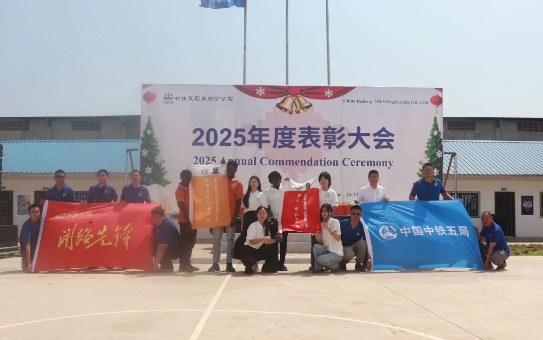 12月23日,中铁五局加纳分公司在加纳AT项目营地举行2025年表彰大会,加纳大学孔子学院师生代表参会并开展第二期文化活动。活动围绕中加传统节日为主题,通过中、英、契维语三语教学及互动问答促进文化交流。孔院教师还与中方员工合唱《茉莉花》,在传播文化的同时寄托了家国情怀。