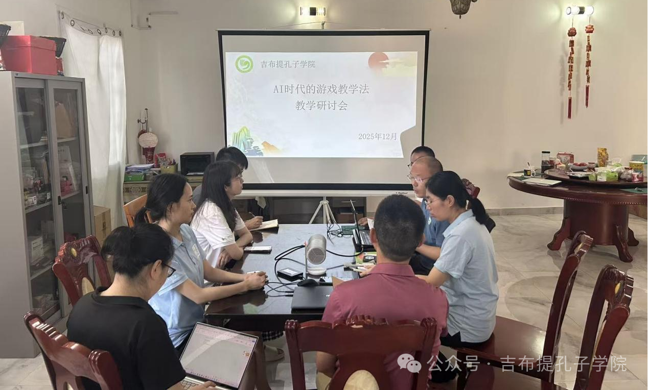 当地时间12月12日,吉布提孔子学院顺应2025年国际中文大会主题“创新引领,数智赋能——让中文零距离”,举办了以“AI赋能时代游戏教学法的应用”为主题的研讨会。活动由孔子学院祝公权老师主持,学院中方院长及全体教师共同参与,旨在探讨如何更好地利用AI工具辅助中文教学,提升教学质量和效率。