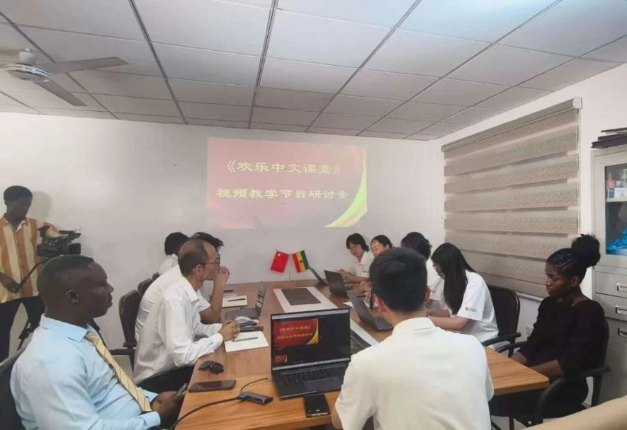 12月23日,加纳大学孔子学院举行《欢乐中文课堂》视频教学节目研讨会,围绕节目策划、制作与呈现进行深入交流,旨在提升节目质量、探索更适应当地需求的中文教学模式。加纳大学孔子学院负责人蔡彬彬与加纳黄金数字电视台执行台长许彬出席会议。