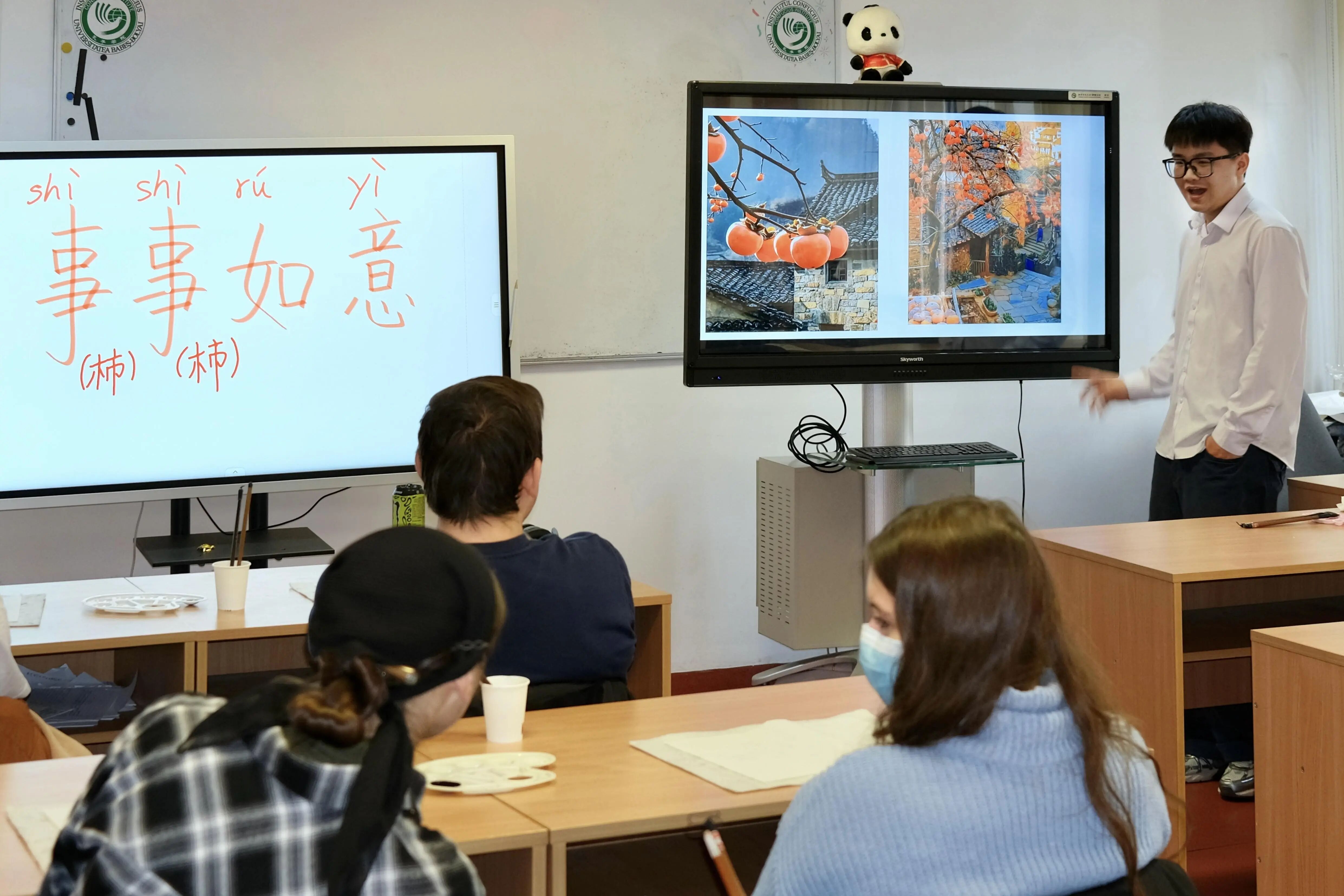 12月16日,罗马尼亚克卢日巴比什-博雅依大学孔子学院举办“柿柿如意”主题水墨画体验活动,面向大一学生介绍春节习俗,讲解“柿”与“事”的谐音寓意,并指导学生绘制柿子图、书写“事事如意”汉字。活动通过实践体验传播了中国传统书画艺术与吉祥文化,促进了当地学生对中国文化的了解与兴趣。