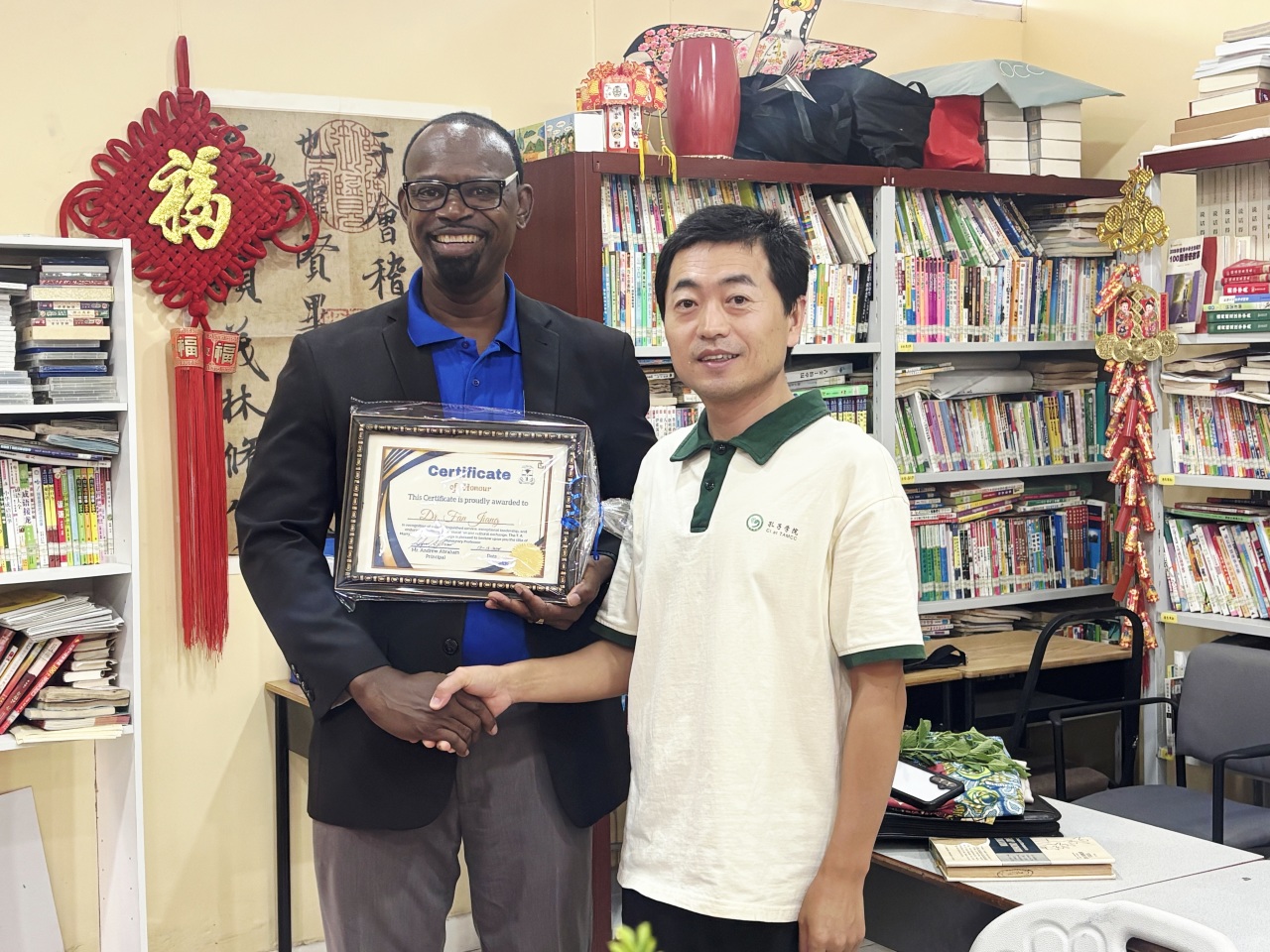 12月12日,玛丽秀社区大学授予姜帆博士“名誉教授”荣誉称号,并颁发荣誉证书与致谢信,以表彰其在两年任期内,为推进中文教育、促进中格文化交流及深化校际合作所作出的突出贡献。