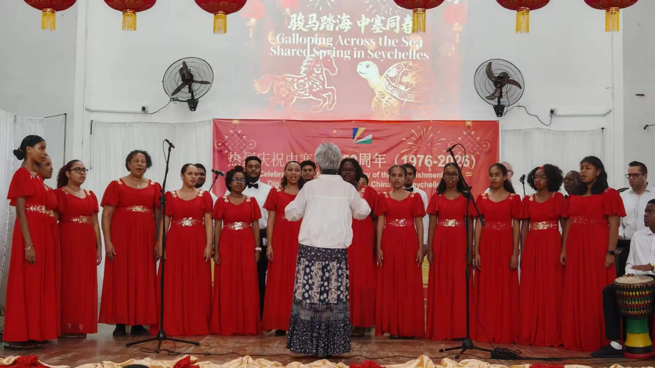 2月7日,第十三届塞舌尔“中国日”活动在塞舌尔自然历史博物馆举办。中国驻塞舌尔大使林楠、塞舌尔副总统等政要与近2000名民众共庆中国马年新春。塞舌尔大学孔子学院深度参与,呈现了舞蹈《上铃鼓》、太极扇表演及学员独唱等文艺节目,并设置文化产品展览与书法体验工作坊,通过熊猫文创、团扇展示及毛笔书法教学,让当地民众近距离感受中华文化魅力。