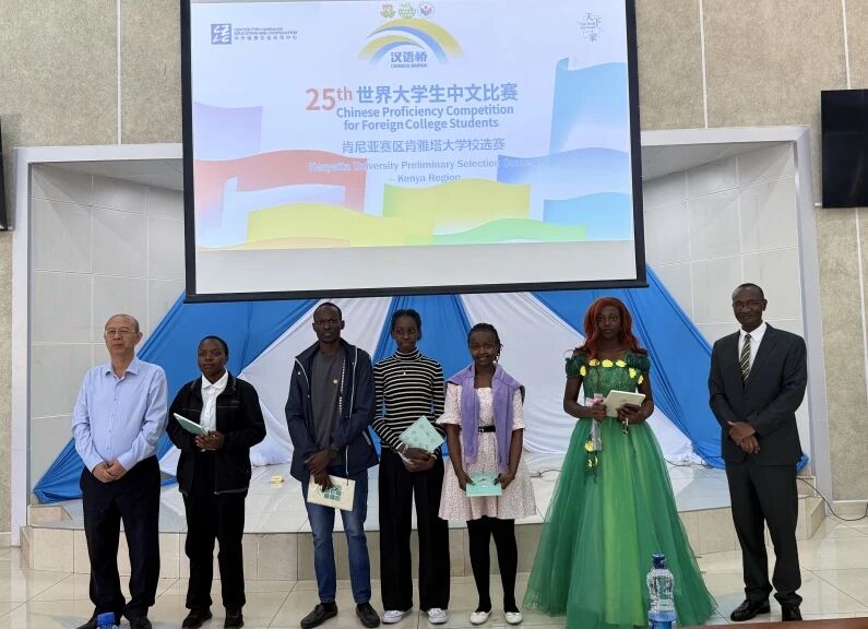 2月26日,第二十五届“汉语桥”世界大学生中文比赛肯尼亚赛区肯雅塔大学校选赛在肯雅塔大学孔子学院举行。比赛以“语言为桥,文化筑梦”为主题,设置主题演讲、知识问答和才艺表演三个环节,共有15名选手参赛,全面展示了学生的汉语水平和综合素养,进一步激发了当地学生学习中文和中华文化的热情。