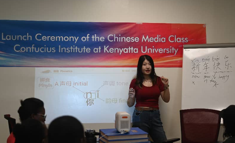 2月10日,肯雅塔大学孔子学院在肯尼亚媒体《The Star》报社启动汉语培训班,开启语言教学与文化交流合作。仪式上,院长周晓东赠送中文书籍,教师王思雨为员工讲授中文入门课,并介绍中国春节习俗,现场学习氛围热烈。
