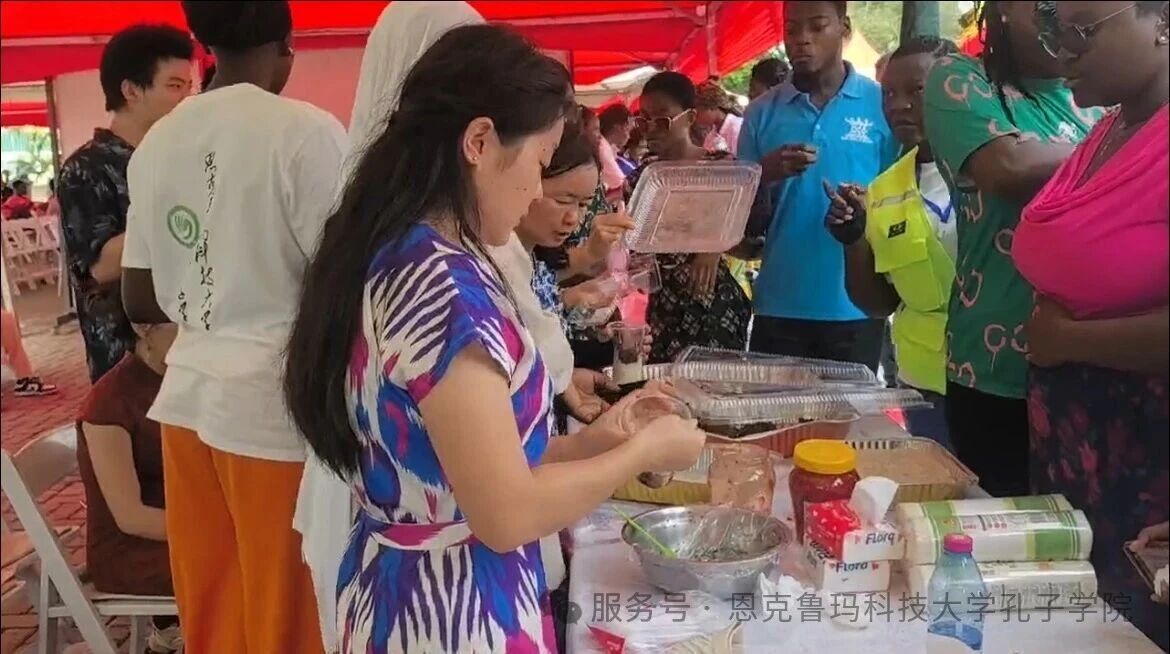 2月13日,恩克鲁玛科技大学孔子学院在校园美食节上展示了中国特色打卤面,搭配两种卤料和中国辣椒酱,吸引众多师生品尝。同时,孔院师生表演了武术串烧,刚劲有力。活动通过美食与武术的结合,展现中华文化魅力,促进中加文化交流。