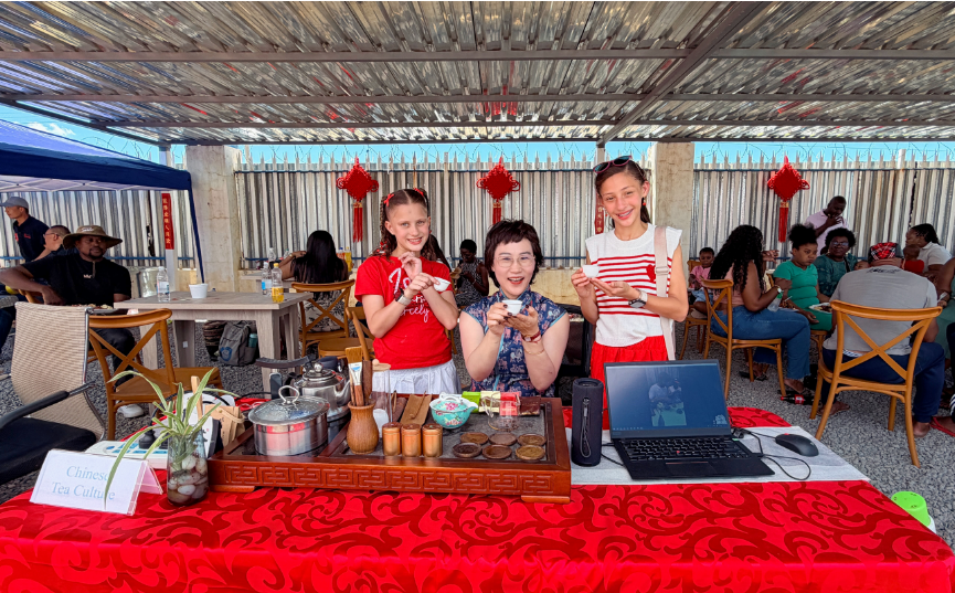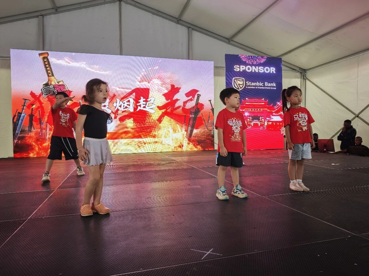 2月14日,纳米比亚大学孔子学院应邀参加中铁七局纳米比亚公司举办的2026年“中非人文交流年”活动,主题为“同心筑梦,文化共融”。孔院设置了中国茶道、脸谱、剪纸、服饰、书法五个特色摊位,通过展示与互动体验介绍中华传统技艺。教学点学生表演了扇子舞《骁》和现代舞《少年》,充分展现了学习成果,赢得观众好评。