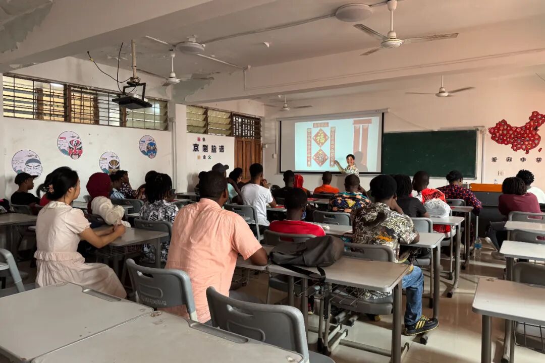 近日,赞比亚大学孔子学院卡隆噶中学教学点开展春节专题教学。国际中文教师杨点讲解了春节的历史与传统习俗,并教授饺子、包子制作及相关词汇。学生们学习了“新年快乐”等祝福语,在语言实践中感受中国文化,课堂气氛热烈。