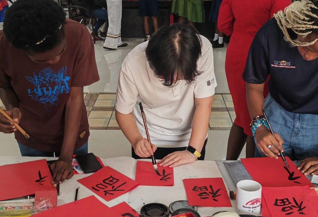 当地时间2月3日,塞拉利昂大学孔子学院举办“翰墨迎春·福至塞拉”汉语角活动。活动通过讲解春联的起源、构成和书法美学,并现场书写示范,让学员沉浸式感受中国年俗文化。近百名中文学习者参加。